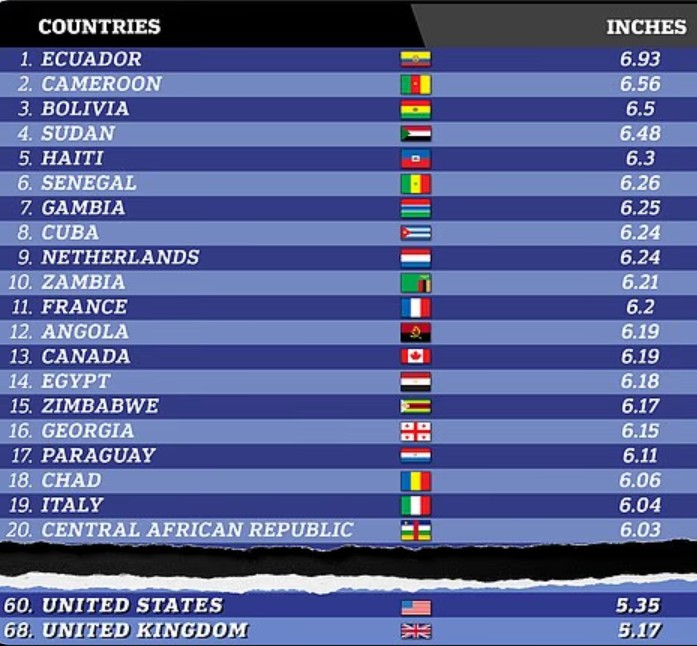Abagabo bo muri ibi bihugu ni bo bafite ibitsina birebire kurusha abandi ku Isi